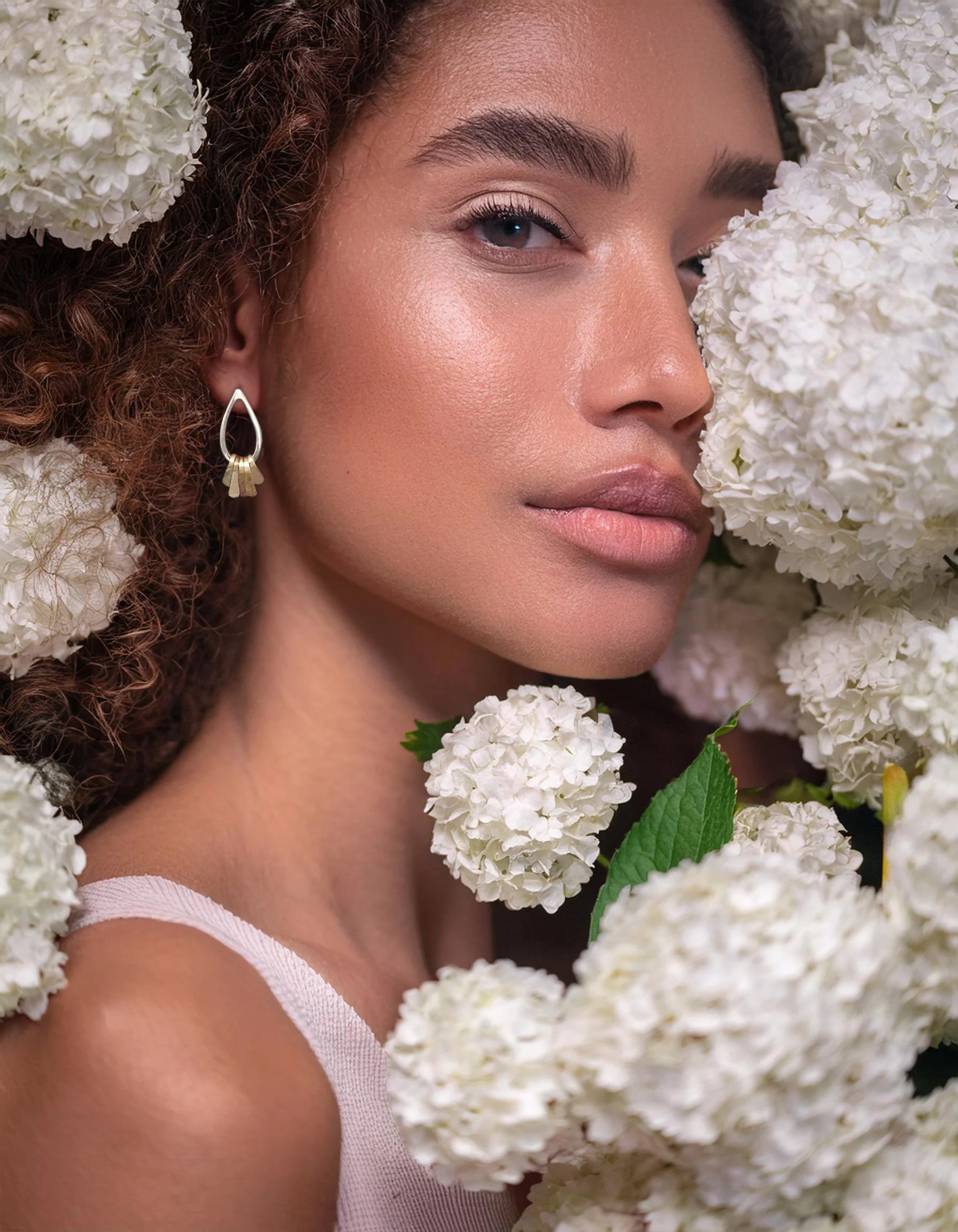 Materials are cut, shaped and hammered to form a range of delicate individual parts, which are then carefully assembled by hand. Jewellery elements are inspired by forms from nature, Japanese design, textiles and traditional craft.